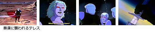 テレス 「(シム弟に掴みかかる)こんな所で死んで何になる! 死ぬのは私一人で十分だ! お前たち若者が新しい星へ移って、ガルベストンを再興しなければ誰がやる! 頼む! ガルベストンを再興してくれ! ガルベストンを、、」