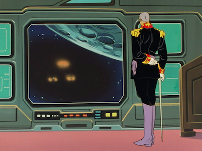 果たしてレビル将軍が和平交渉の相手として適しているのかどうか、地球連邦の統治機構や政治的な意思決定がどのように行われているのかが本作にはまったく描かれていないのでよくわからないが、ギレンに内緒で動く父デギン、という構図に、すでにザビ家の方が意思統一を欠いた状態になっていることがわかる。キシリアにも、ソーラレイシステムによる攻撃はギリギリ30分前に知らせていることからも、これがほぼギレンの独断で行われていることが推察される。
