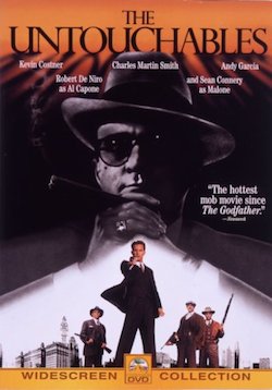 スト−リ−禁酒法時代のシカゴ。カナダからの密輸入などで勢力を拡大し、暴力と賄賂で完全に街を支配していたマフィアの大ボス、アル・カポネ(ロバート・デ・ニーロ)。彼を検挙すべく、財務局捜査官のエリオット・ネス(ケヴィン・コスナー)が警察の捜査に加わる。しかし、カナダからの密輸を暴くとして、新聞記者を引き連れて乗り込んだ現場はもぬけの殻。警察から事前に情報が漏れていたのだ。記者からも刑事たちからもバカにされまくったネスはすっかり落ち込んで家路につくが、途中で出会ったパトロールの警官ジム・マローン(ショーン・コネリー)の威厳ある態度と眼力に目をつけ、自ら選んだ警官ジョージ・ストーン(アンディ・ガルシア)、援軍にきた財務局のオスカー・ウォレス(チャールズ・マーティン・スミス)を加えた4人でチームを結成。本腰を入れて密造酒の摘発に乗り出す。賄賂を受け取らず次々と星を挙げていく彼らはやがて“アンタッチャブル”と呼ばれて一目置かれる存在に。そんな中、ウォレスは脱税で彼らを摘発できるのではないかと考えるが…。 | ||