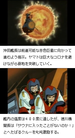 バリアはデズラーの仕掛けた罠で、ヤマトはバリアを避けて前進すれば赤色巨星のコロナに焼かれ、下がればガス生命体の餌食となる、という八方ふさがりの状況に追い込まれる。進退窮まる中、沖田艦長は前進を命じ、ヤマトは立ち上る赤色巨星のコロナを回避しながら進んでゆくが・・・